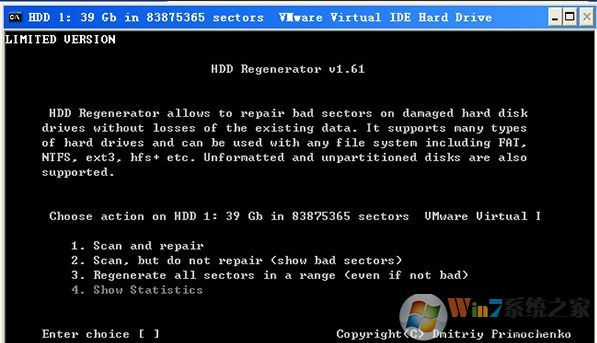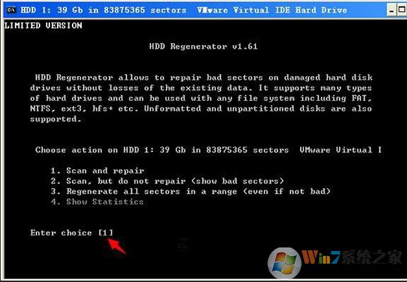 3、選擇要掃描的硬盤雙擊之后出現(xiàn)DOS界面