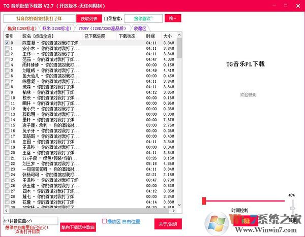 想要免費下載蝦米、酷狗等音樂中音樂的用戶快來試試TG音樂批量下載器v2.7綠色特別版吧~(解壓密碼:winwin7)