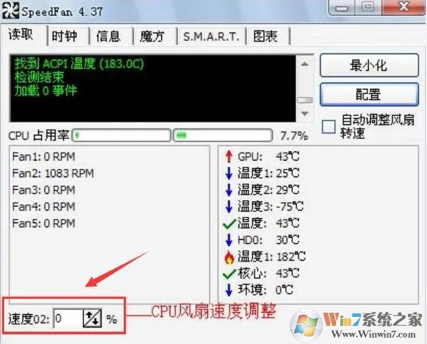 3. 或者,用戶也可以返回 speedfan 的主界面,在“讀取”的選項卡中手動調(diào)節(jié) CPU 風扇轉(zhuǎn)速的固定值。