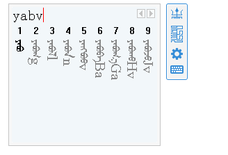 每個音節(jié)的首字母必輸、其余字母可以省略。如輸入蒙古文詞??????????只需要輸入(aqlh),候選框中便出現(xiàn)該詞圖。但其出現(xiàn)位置比較靠后,在輸入碼a后補充i,即可將該詞提升到第一個位置圖。以此類似,可通過補充每個音節(jié)首字母后的其余字母,直至您需要的詞出現(xiàn)為止或出現(xiàn)在候選框靠前位置。