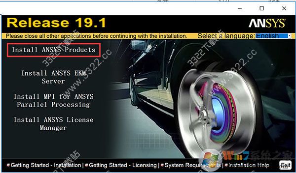 4.主安裝界面出現(xiàn)后,點擊“Install ANSYS Products”開始安裝主程序。