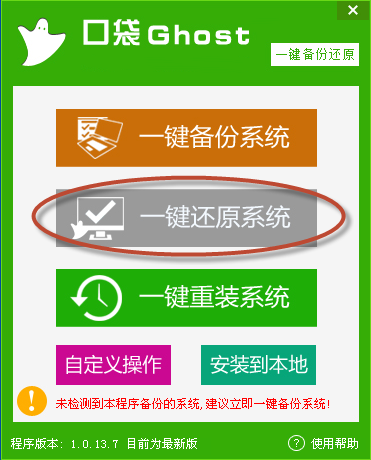 口袋Ghost一鍵還原系統(tǒng)功能幫助大家實(shí)現(xiàn)快速、準(zhǔn)確實(shí)現(xiàn)還原WIN7系統(tǒng),具體操作大家可以按照下面的介紹一步一步進(jìn)行.