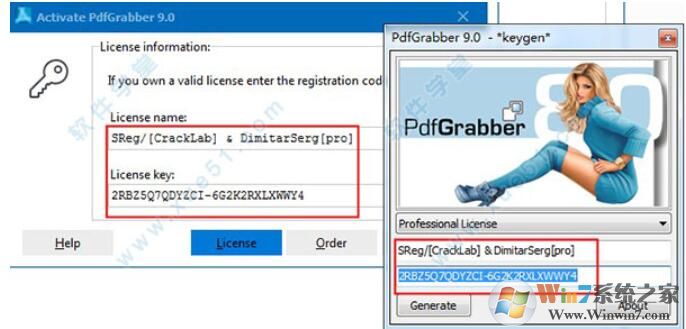 1、首先安裝原版軟件,之后打開注冊機(jī)“Pdf.Grabber.v.9.kg.by.SReg.exe”生成注冊碼,將注冊碼復(fù)制到軟件上然后點擊license