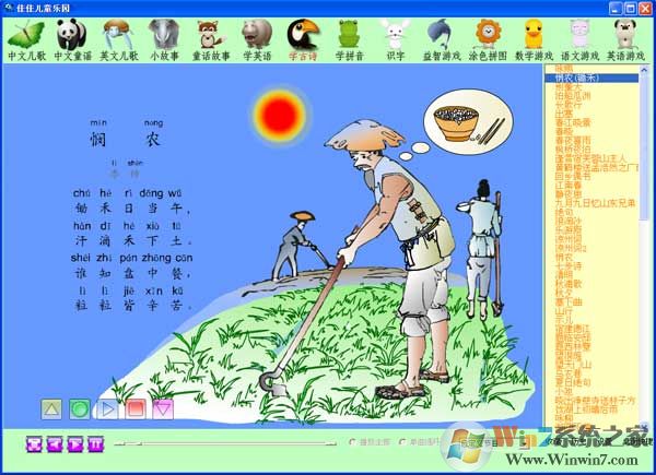 還對(duì)大一點(diǎn)的寶寶提供了學(xué)知識(shí)板塊,包括了學(xué)古詩(shī),學(xué)拼音,識(shí)字等分類。其中古詩(shī)單元,收錄了中國(guó)幾千年來(lái)膾炙人口的經(jīng)典名篇;學(xué)拼音單元有韻母聲母的學(xué)習(xí),還有有趣的小恐龍學(xué)拼音,采用卡通動(dòng)畫的方式,由淺入深,圖文并茂,讓兒童跟隨卡通動(dòng)畫,在聽故事、玩游戲中不知不覺地就學(xué)會(huì)了拼音;在識(shí)字單元,有看圖識(shí)字,漢字的筆順,筆畫,偏旁部首以及組詞學(xué)習(xí)。
