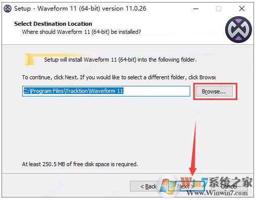 2、雙擊waveform_64bit_v11.0.26.exe運(yùn)行安裝,點(diǎn)擊browse可以自由選擇安裝路徑: