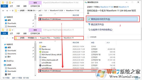 5、將Waveform 11 (64-bit).exe復(fù)制到安裝目錄中,點(diǎn)擊替換目標(biāo)中的文件: