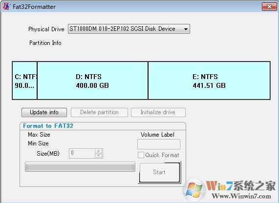 需要將容量較大的硬盤格式化成FAT32格式的話那么快來(lái)使用winwin7給大家分享介紹的這款Fat32Format v1.1綠色版吧!