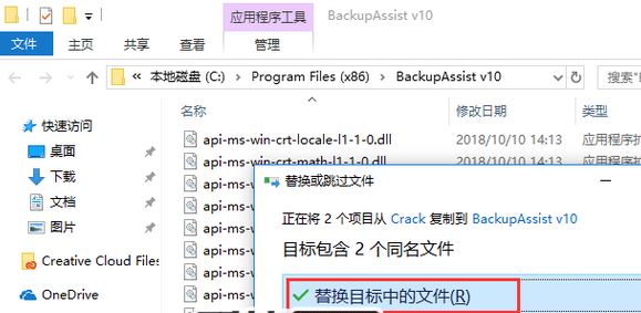 3、打開Crack文件夾,復(fù)制BackupAssist.exe、CortexIT.Core.dll到軟件安裝目錄下替換原文件默認路徑C:\Program Files (x86)\BackupAssist v10