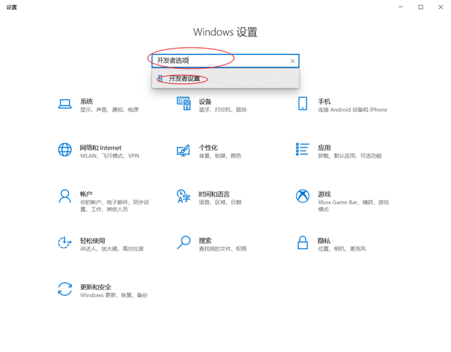 前期準備,軟件需要安裝證書,首先需要打開【開發(fā)者模式】,在設置里面搜索【開發(fā)者選項】,下方會自動出現(xiàn)【開發(fā)者設置】,點擊它,就打開了【開發(fā)者選項】如圖,找到并打開【開發(fā)人員模式】就行了。