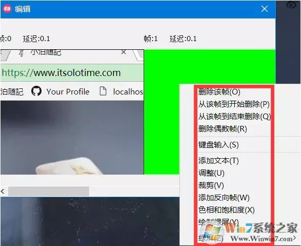5、編輯狀態(tài)下可查看每一幀,可以刪除幀、增加減少當(dāng)前幀延時(shí)。