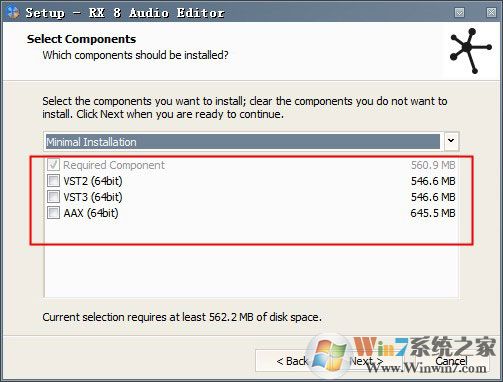 4、選擇軟件安裝的組件,確認后點擊next進入下一步;參考下面圖片: