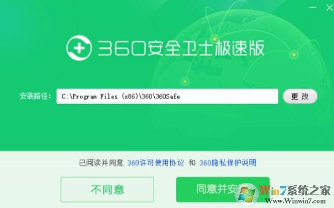 1、安裝界面更加簡(jiǎn)潔:在一開始的安裝界面,360 安全衛(wèi)士極速版沒有隱藏功能選項(xiàng),只有選取安裝路徑,并進(jìn)行安裝。