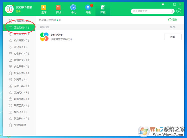 3.軟件管家--【卸載】tab增加“衛(wèi)士功能”分類,