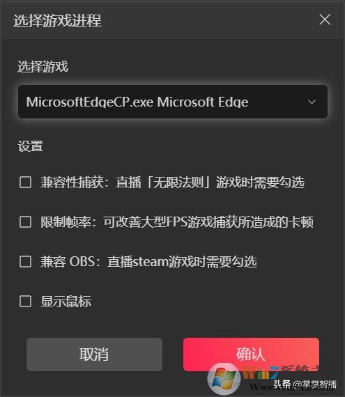 游戲進(jìn)程捕獲時(shí),也請(qǐng)選擇準(zhǔn)確的當(dāng)前游戲名稱,設(shè)置中的相關(guān)選項(xiàng),請(qǐng)視文案提示酌情勾選。