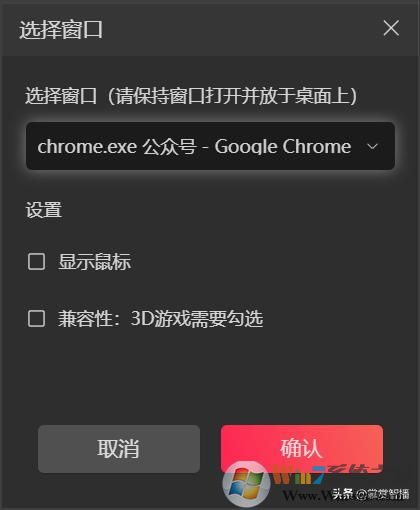 窗口源添加與游戲進(jìn)程抓取相同,需要選擇正確的窗口程序名稱。同時(shí),與OBS中相同,窗口捕獲時(shí),不能最小化源窗口。