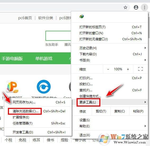 1、在長(zhǎng)時(shí)間使用Chrome瀏覽器后,可能需要清楚緩存來解決Chrome瀏覽器的一些問題,方法很簡(jiǎn)單首先打開谷歌瀏覽器點(diǎn)擊菜單圖標(biāo),在下拉菜單中選擇“更多工具”——“清除瀏覽數(shù)據(jù)”選項(xiàng),如下圖所示: