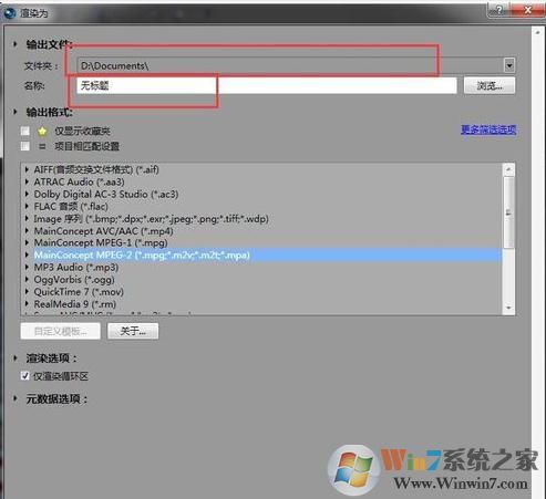 4、在渲染格式的選擇上,我們根據(jù)視頻的屬性選擇:720P模式的MPG格式