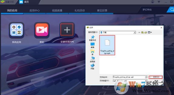 2、安裝成功以后,打開(kāi)模擬器,點(diǎn)擊安裝本地apk;