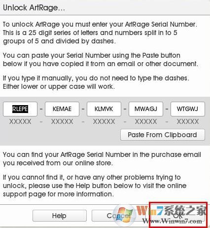 2、接著運行桌面快捷方式打開軟件,彈出注冊碼輸入界面,輸入注冊碼【RLEPE-KEMAE-KLMVK-MWAGJ-WTGWJ】,點擊OK。如圖:
