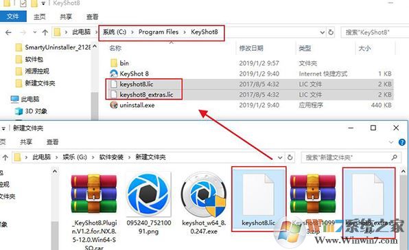 2.、修改好HOSTS后接著我們將補(bǔ)丁“keyshot8.lic”和“keyshot8_extras.lic”這兩個(gè)許可文件復(fù)制到C:\Users\shandian\Documents\KeyShot 8目錄下,如圖: