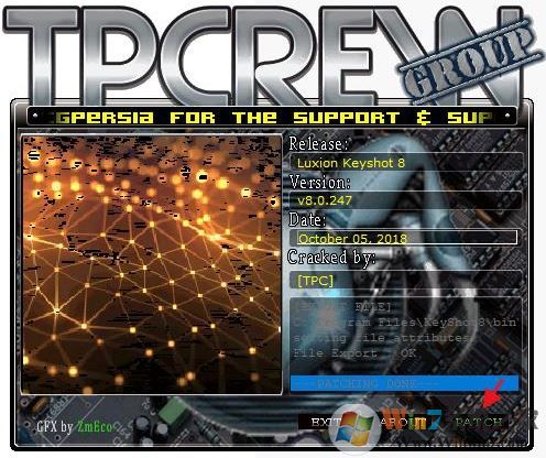3、接著我們將“lkeyshot8-tpc-patch.exe”注冊(cè)機(jī)復(fù)制到軟件安裝路徑bin文件下并運(yùn)行,輸入密碼:tpcrew-group,bin文件路徑C:\Users\shandian\AppData\Local\KeyShot8\bin ,如圖所示: