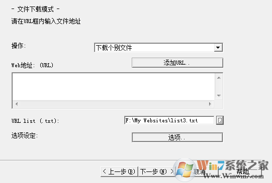 3、我們要下載若干個帖子,所以操作選擇下載個別文件,web地址可以逐個輸入,也可以用list列表,列表以回車鍵分開,對于有規(guī)律的帖子,可以在excel中拖動快速形成。