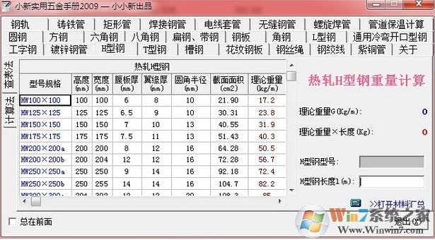 2、這兒是熱軋H型鋼重量測(cè)算的功能,顯視所有的測(cè)算規(guī)格型號(hào)以及測(cè)算的數(shù)據(jù),可以鍵入型號(hào)規(guī)格查看凈重;