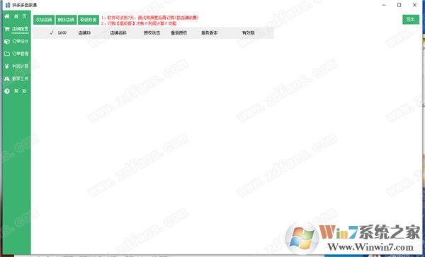 4、點(diǎn)擊店鋪配置按鈕可以進(jìn)行店鋪添加、刪除或者店鋪數(shù)據(jù)導(dǎo)出;