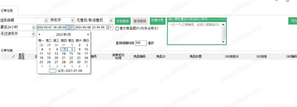 9、點(diǎn)擊日期可以查詢指定日期的待發(fā)貨商品信息;