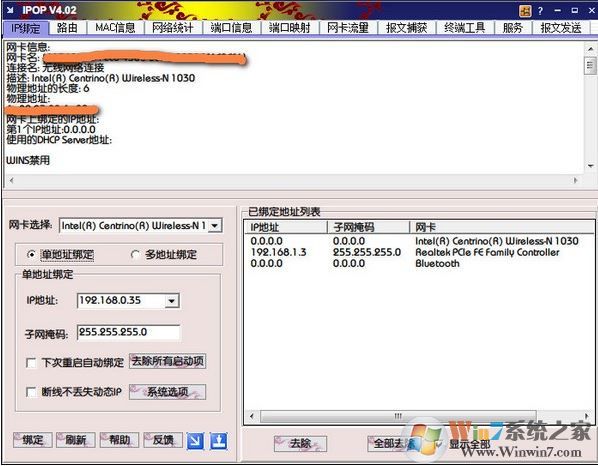 *本軟件可以自動(dòng)搜索系統(tǒng)中存在網(wǎng)卡,在邦定前請選擇正確的網(wǎng)卡。