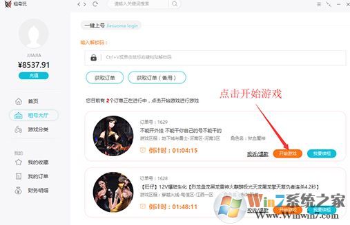 選擇一鍵上號(hào)--鍵入解鎖碼,點(diǎn)擊獲得定單--點(diǎn)擊進(jìn)入游戲