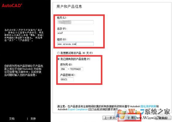 2、使用的系列號:356-72378422或者其它符合這個版本號的系列號