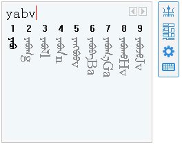 為向前兼此版鍵盤布局與原有蒙科立音碼輸入法和整詞輸入法盡!與整詞輸入法的區(qū)別在于, b、g、r、d、m、n等半音輔音字母不必再用p、k、e、a、z、o其他字母輸入。