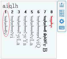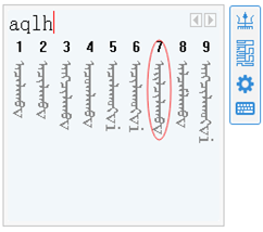 每個(gè)音節(jié)的首字母必輸、其余字母可以省略。如輸入蒙古文詞??????????只需要輸入(aqlh),候選框中便出現(xiàn)該詞圖。但其出現(xiàn)位置比較靠后,在輸入碼a后補(bǔ)充i,即可將該詞提升到第一個(gè)位置圖。以此類似,可通過(guò)補(bǔ)充每個(gè)音節(jié)首字母后的其余字母,直至您需要的詞出現(xiàn)為止或出現(xiàn)在候選框靠前位置。