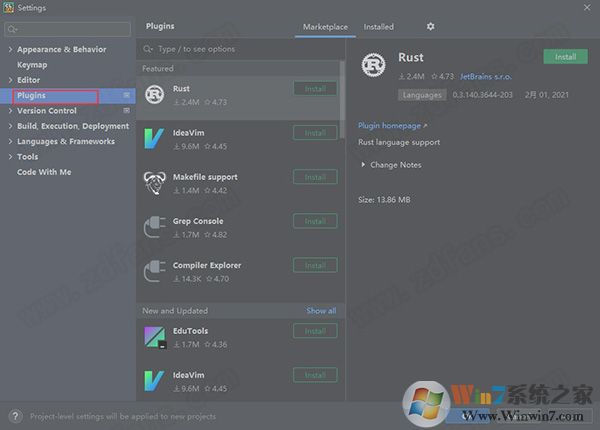 8.直接快捷鍵“Ctrl+ALT+S”打開“Settings -> Plugins”;