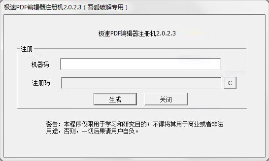 5、主程序安裝完成后不要運(yùn)行程序,直接打開(kāi)直接壓縮包中的極速pdf編輯器2.0.2.3注冊(cè)機(jī).exe文件,如下圖所示: