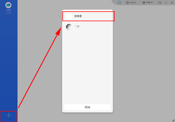 4、軟件中可點(diǎn)擊左下角加號,點(diǎn)擊新微信可創(chuàng)建微信分身