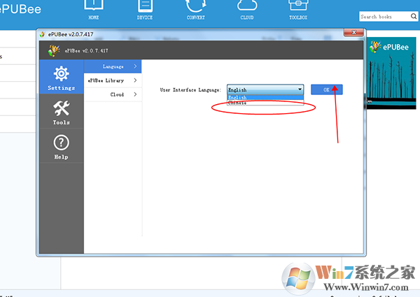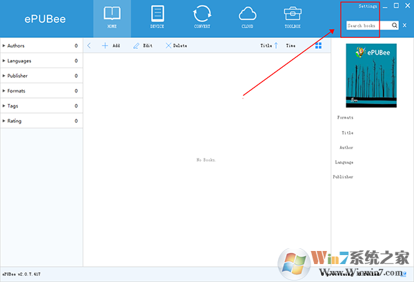 1、運行epubee后點擊右上角的Settings;