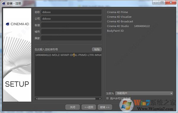 3、輸入基本信息,其中用戶信息是可以隨便輸入的,然后將序列號(hào)復(fù)制入內(nèi)
