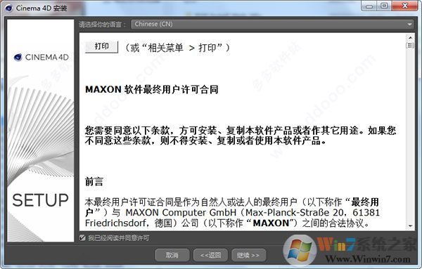 1、首先先下載,之后并運(yùn)行C4D R20官方中文版安裝程序“MAXON-Start.exe”,選擇“語(yǔ)言CN-Chinese”