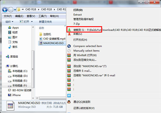 1、打開虛擬光驅(qū)如DVDFab Virtual Drive,右鍵點擊裝載Cinema4D R18鏡像文件“MAXONC4D.ISO”,不要安裝解壓文件進行安裝,會出現(xiàn)安裝錯誤。