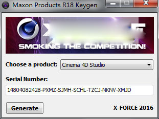 5、打開Cinema4D R18注冊機,選擇您需要的C4D R18版本,點擊“Generate”,自動生成并復(fù)制序列號(注冊機可能存在報毒誤刪現(xiàn)象)