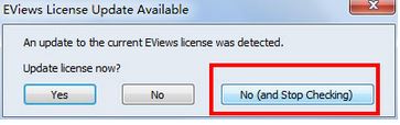 注意:第一次使用EViews8.0的時(shí)候會(huì)問(wèn)你要不要檢測(cè)并更新license文件,選擇No(andStopChecking),即不更新并且不要再檢測(cè)了。