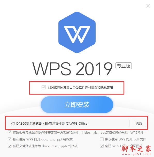 下圖紅框?yàn)?ldquo;同意軟件許可協(xié)議”和“選擇軟件安裝目錄”,選擇完成后點(diǎn)擊“立即安裝”