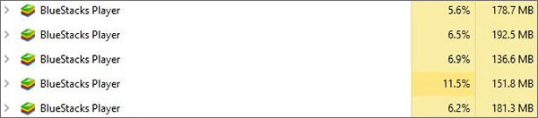 重點(diǎn)是多開(kāi) N 個(gè)游戲之后,模擬器的資源占用依然還相當(dāng)?shù)男?,如下圖: