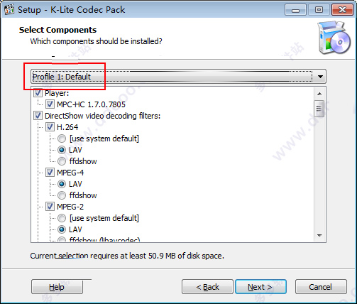 3、默認選擇profile 1,這里面包含了wmv解碼器;