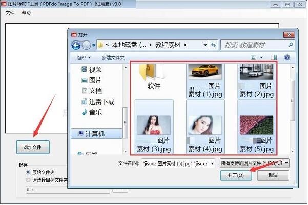 3、點擊添加文件,選擇要轉(zhuǎn)換的圖片文件(JPG/PNG/BMP),點擊打開。