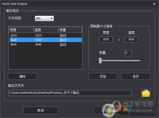 3、在多尺寸輸出界面,用戶可以自定義調整壓縮輸出的文件類型,接著選擇圖片的寬度、高度與質量,當然可不僅僅只能輸出這三種圖片質量,你還可以點擊添加與清除選擇壓縮圖片輸出的數(shù)量,全部完成后選擇輸出文件夾點擊轉換即可完成壓縮圖片的全部內容,如下圖所示: