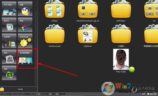 1、現(xiàn)在很多照片都可以進行照片底色的更換,只要是純色背景的照片都可以利用圖片館軟件實現(xiàn)換背景的目的,在左邊的批處理中找到“自動背景替換”功能