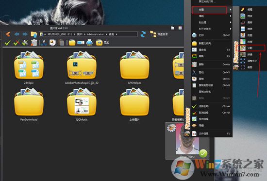 1、圖片館軟件的圖像瀏覽功能非常強大,但如果你想要將一張圖片進行切割處理,則需要利用圖片工廠進行搭配處理才行,直接右鍵點擊想要切割的圖片,找到“處理”中的“分割”功能,如果你之前已經(jīng)安裝過圖片工廠,將會自動打開圖片工廠進行切割處理,如果沒有,則可以點擊下面的鏈接一鍵下載